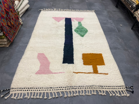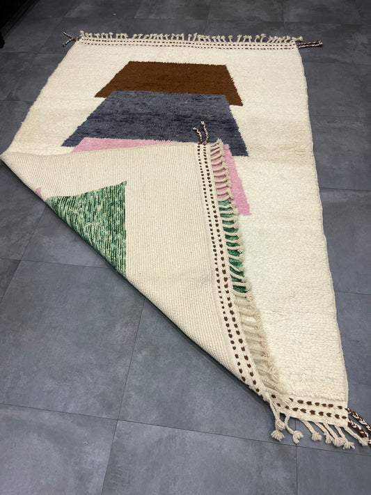Moroccan Berber Rug - Beni Ourain Colour Abstract Shapes 2.6 X 1.6m | 100% Wool Handmade