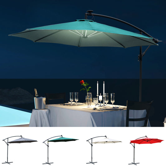 3(M) LED Patio Banana Umbrella Cantilever Parasol W/ Solar Lights Crank Handle