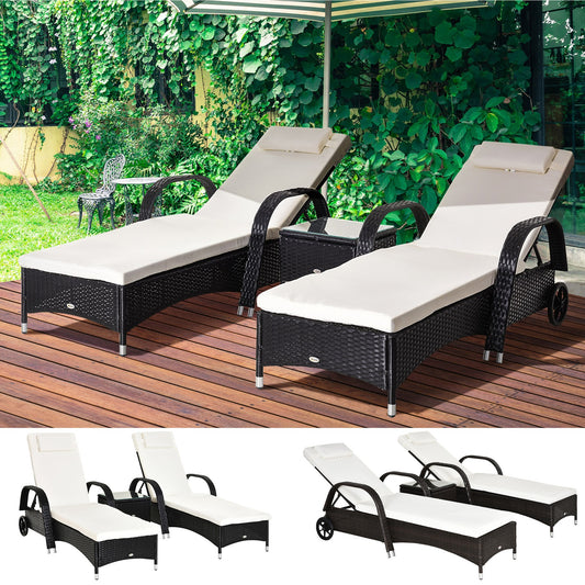 3PC Rattan Sun Lounger Wicker Sofa Day Bed Recliner Furniture Garden Patio