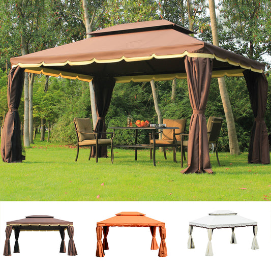 3.7 X 3(M) Outdoor Metal Gazebo 2-Tier Roof Sidewalls Pavilion Marquee Garden