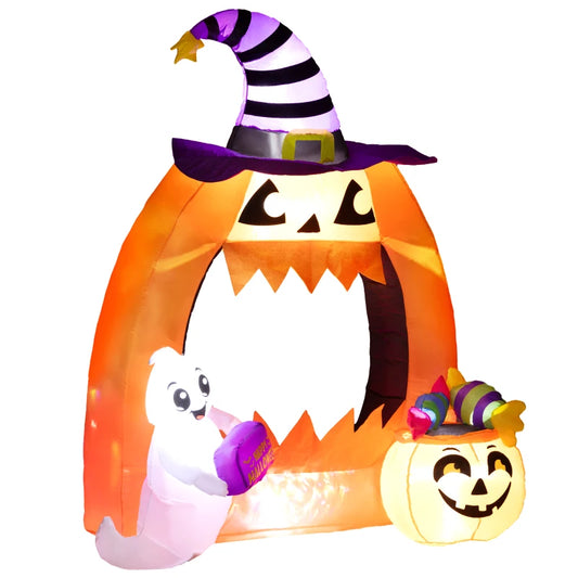 Outsunny 4.9FT Tall Halloween Inflatable Pumpkin Archway with Cute Ghost