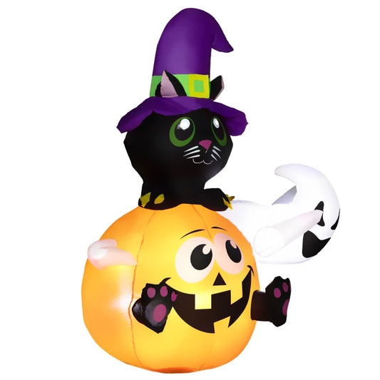 Outsunny 4.9FT Tall Halloween Inflatable Black Cat Riding Pumpkin with White Ghost