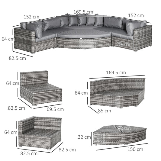 6 Pcs Outdoor Rattan Sofa Set Half round Conversation Set W/ Cushions Pillows