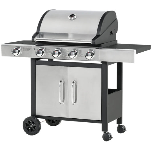 Outsunny Gas Barbecue Grill 4+1 Burner Garden Smoker BBQ Trolley