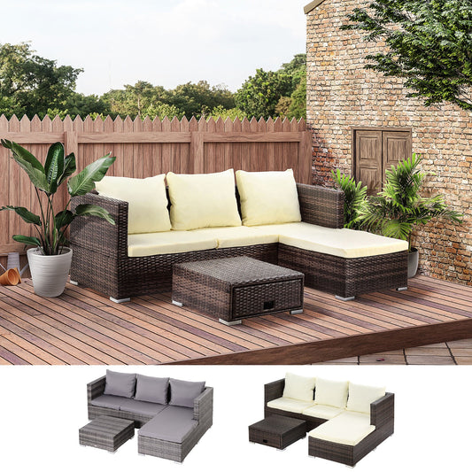 Outsunny 3Pcs Rattan Garden Furniture 4 Seater Outdoor
