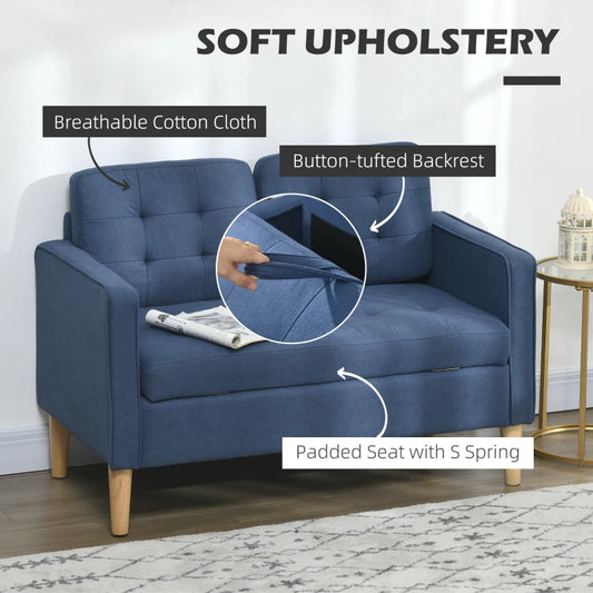 HOMCOM Modern 2 Seater Sofa with Hidden Storage