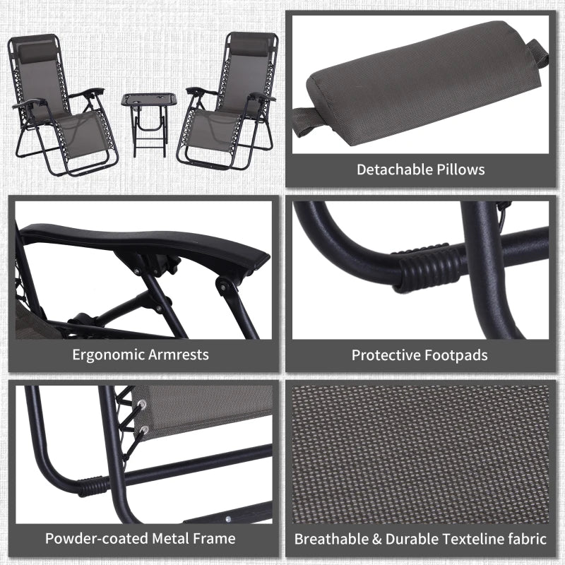 - Outsunny 3pcs Folding Zero Gravity Chairs Sun Lounger